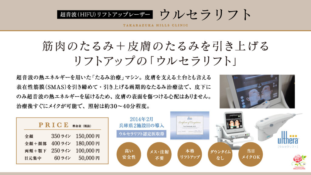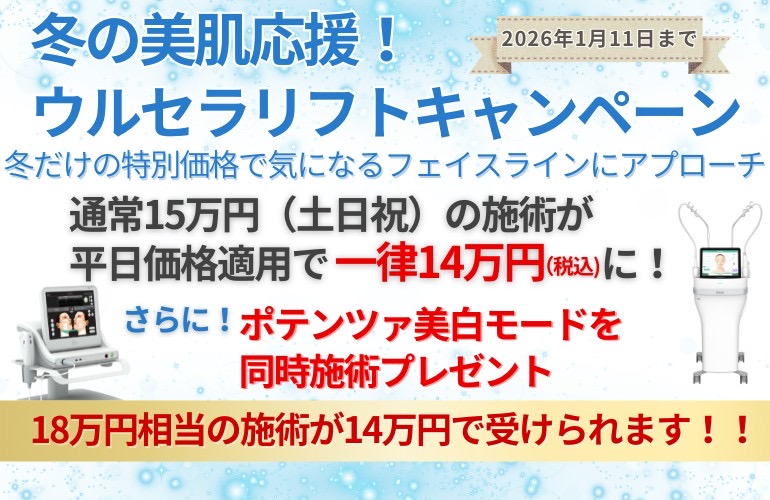 通常はピコトーニングやポテンツァの予約が入るので、1時間程度要するウルセラリフトなどは直前に予約が取りにくく大変ご迷惑をおかけしております。