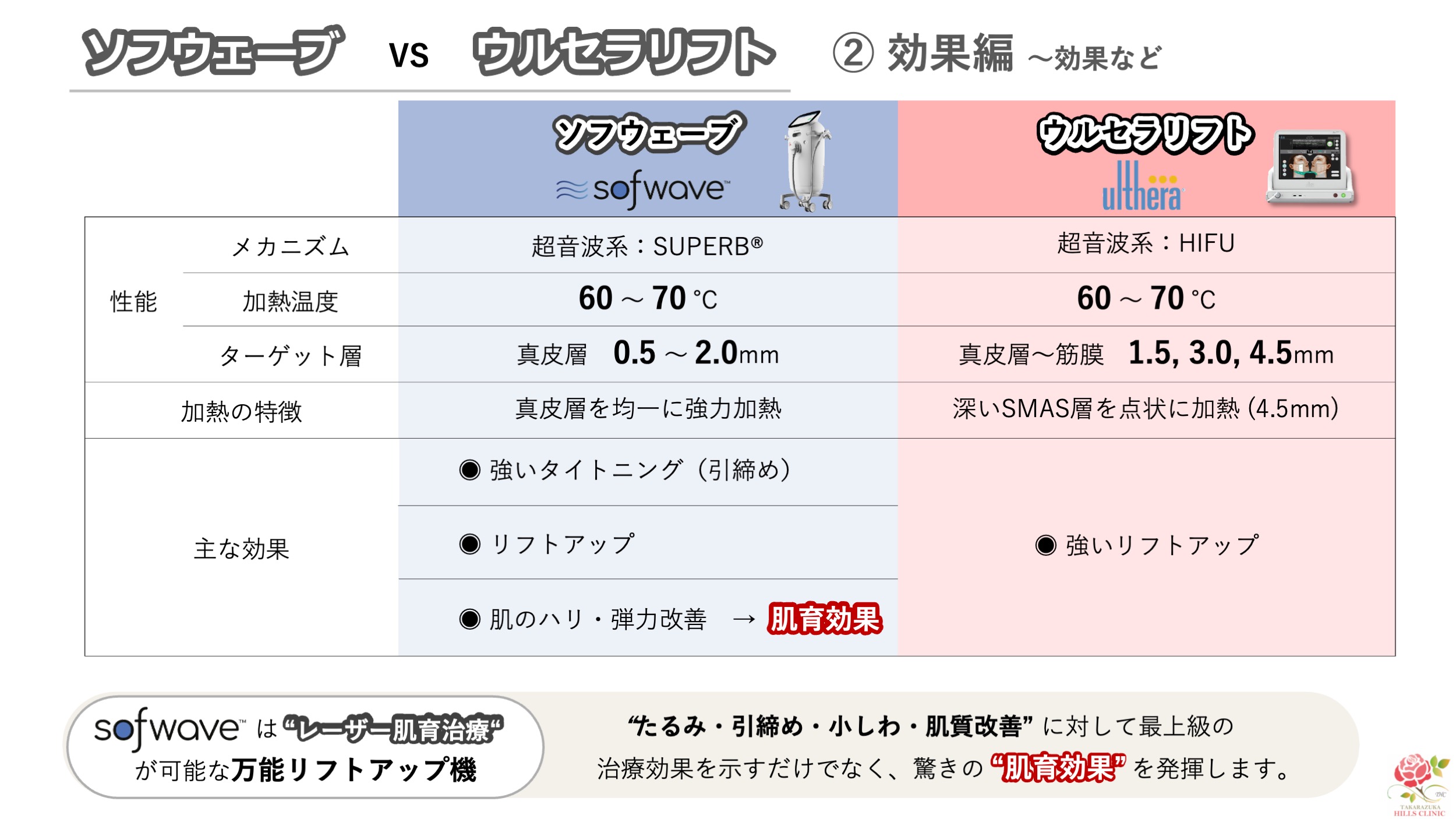 第4回は、前回に引き続き最新リフトアップ機のソフウェーブと最強ハイフのウルセラリフトの対決第2弾となります。