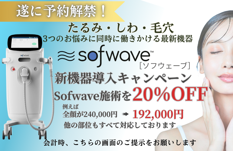 みなさん、こんにちは。 9月新規導入の Sofwave ソフウェーブ ①リフトアップ効果②シワ改善効果③肌質改善効果 これだけの悩みを一気に改善できる美容機器はこれまで存在しませんでした。 先日、めでたく当院施術第1号を受けていただきましたが、施術直後に... -